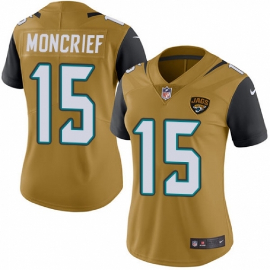 >Women's Nike Jacksonville Jaguars #15 Donte Moncrief Limited Gold Rush Vapor Untouchable NFL Jersey