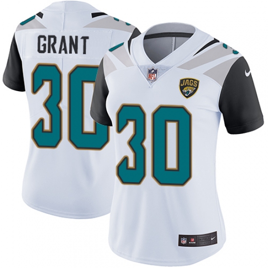 Home>NFL>Jacksonville Jaguars>Corey Grant>Women's Nike Jacksonville Jaguars #30 Corey Grant White Vapor Untouchable Limited Player NFL Jersey