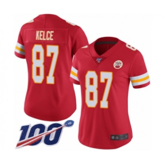 Women's Nike Kansas City Chiefs #87 Travis Kelce Red Team Color Vapor Untouchable Limited Player 100th Season NFL Jersey