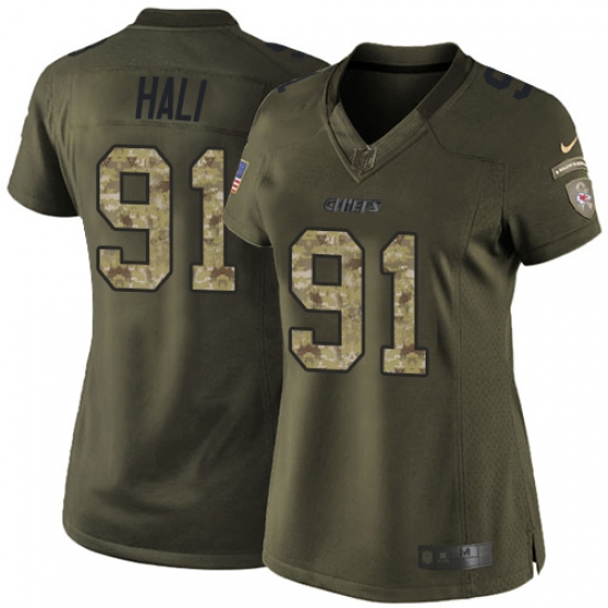 Home>NFL>Kansas City Chiefs>Tamba Hali>Women's Nike Kansas City Chiefs #91 Tamba Hali Elite Green Salute to Service NFL Jersey