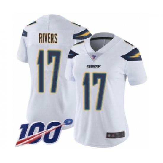 Women's Nike Los Angeles Chargers #17 Philip Rivers White Vapor Untouchable Limited Player 100th Season NFL Jersey