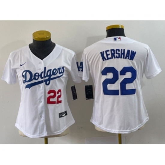 Women's Nike Los Angeles Dodgers #22 Clayton Kershaw Number White Stitched MLB Cool Base Nike Jersey