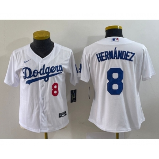 Women's Nike Los Angeles Dodgers #8 Kike Hernandez White Stitched Cool Base Jersey