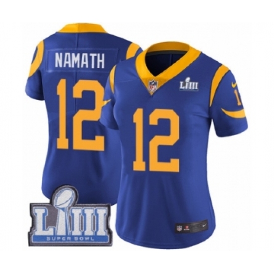 Women's Nike Los Angeles Rams #12 Joe Namath Royal Blue Alternate Vapor Untouchable Limited Player Super Bowl LIII Bound NFL Jersey