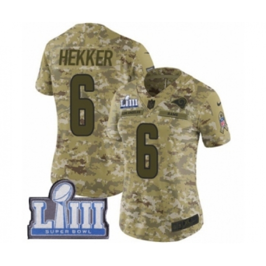 Women's Nike Los Angeles Rams #6 Johnny Hekker Limited Camo 2018 Salute to Service Super Bowl LIII Bound NFL Jersey
