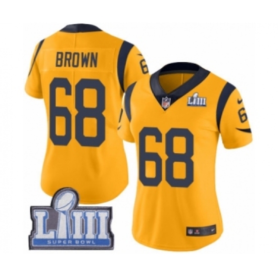 Women's Nike Los Angeles Rams #68 Jamon Brown Limited Gold Rush Vapor Untouchable Super Bowl LIII Bound NFL Jersey