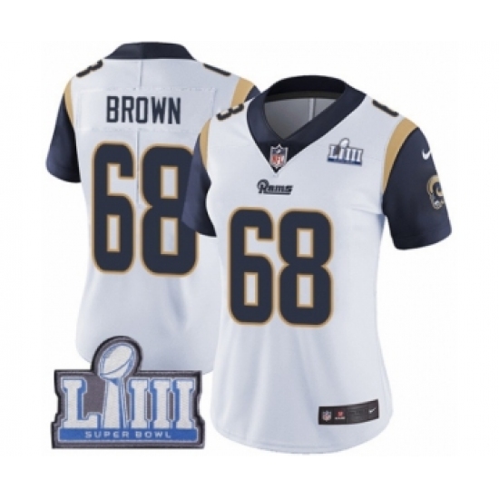 Women's Nike Los Angeles Rams #68 Jamon Brown White Vapor Untouchable Limited Player Super Bowl LIII Bound NFL Jersey