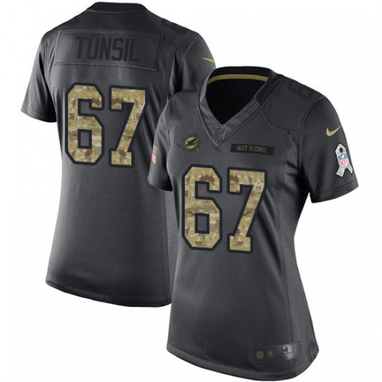 Home>NFL>Miami Dolphins>Laremy Tunsil>Women's Nike Miami Dolphins #67 Laremy Tunsil Limited Black 2016 Salute to Service NFL Jersey