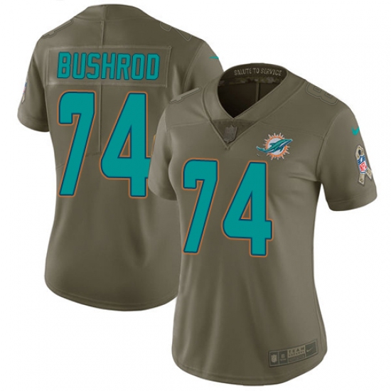 Home>NFL>Miami Dolphins>Jermon Bushrod>Women's Nike Miami Dolphins #74 Jermon Bushrod Limited Olive 2017 Salute to Service NFL Jersey