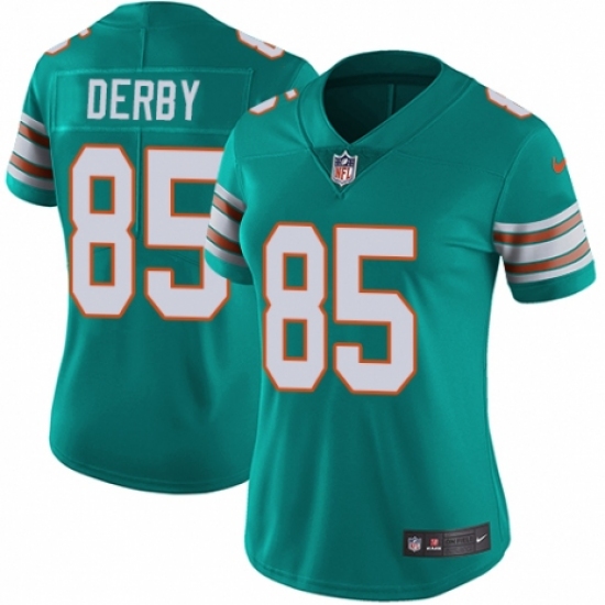 >Women's Nike Miami Dolphins #85 A.J. Derby Aqua Green Alternate Vapor Untouchable Limited Player NFL Jersey