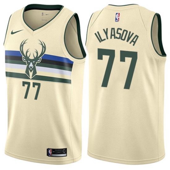 >Women's Nike Milwaukee Bucks #77 Ersan Ilyasova Swingman Cream NBA Jersey - City Edition