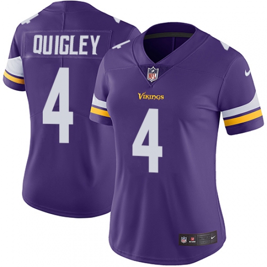 Home>NFL>Minnesota Vikings>Ryan Quigley>Women's Nike Minnesota Vikings #4 Ryan Quigley Purple Team Color Vapor Untouchable Limited Player NFL Jersey