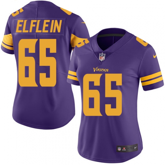 Women's Nike Minnesota Vikings #65 Pat Elflein Limited Purple Rush Vapor Untouchable NFL Jersey