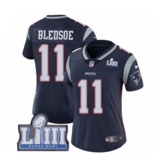 Women's Nike New England Patriots #11 Drew Bledsoe Navy Blue Team Color Vapor Untouchable Limited Player Super Bowl LIII Bound NFL Jersey
