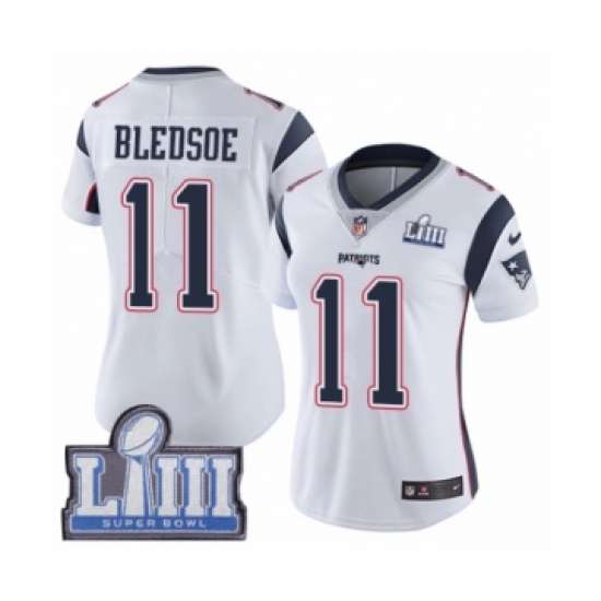 Women's Nike New England Patriots #11 Drew Bledsoe White Vapor Untouchable Limited Player Super Bowl LIII Bound NFL Jersey