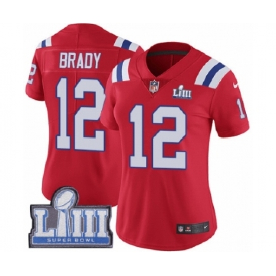 Women's Nike New England Patriots #12 Tom Brady Red Alternate Vapor Untouchable Limited Player Super Bowl LIII Bound NFL Jersey