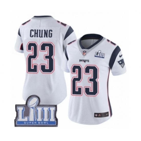 Women's Nike New England Patriots #23 Patrick Chung White Vapor Untouchable Limited Player Super Bowl LIII Bound NFL Jersey
