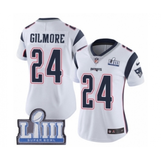 Women's Nike New England Patriots #24 Stephon Gilmore White Vapor Untouchable Limited Player Super Bowl LIII Bound NFL Jersey