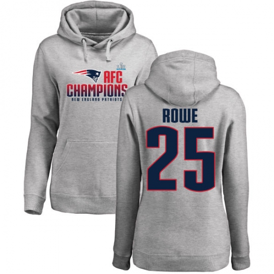 Women's Nike New England Patriots #25 Eric Rowe Heather Gray 2017 AFC Champions Pullover Hoodie