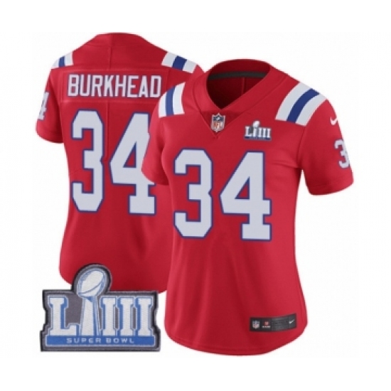 Women's Nike New England Patriots #34 Rex Burkhead Red Alternate Vapor Untouchable Limited Player Super Bowl LIII Bound NFL Jersey