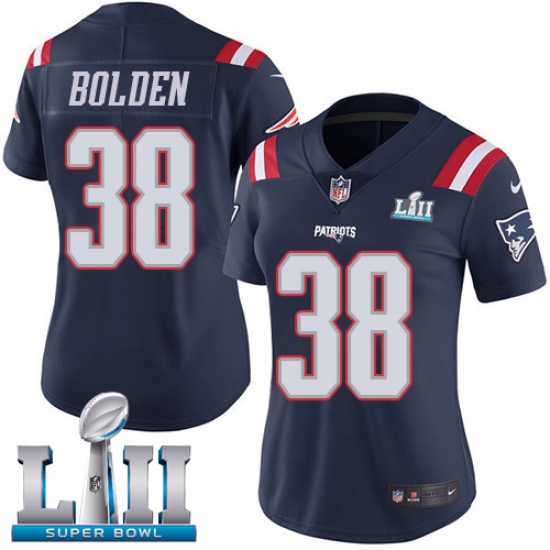 Home>NFL>New England Patriots>Brandon Bolden>Women's Nike New England Patriots #38 Brandon Bolden Limited Navy Blue Rush Vapor Untouchable Super Bowl LII NFL Jersey