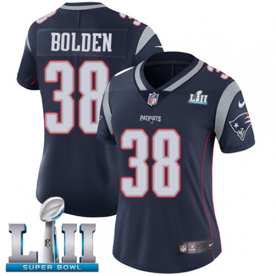 Women's Nike New England Patriots #38 Brandon Bolden Navy Blue Team Color Vapor Untouchable Limited Player Super Bowl LII NFL Jersey