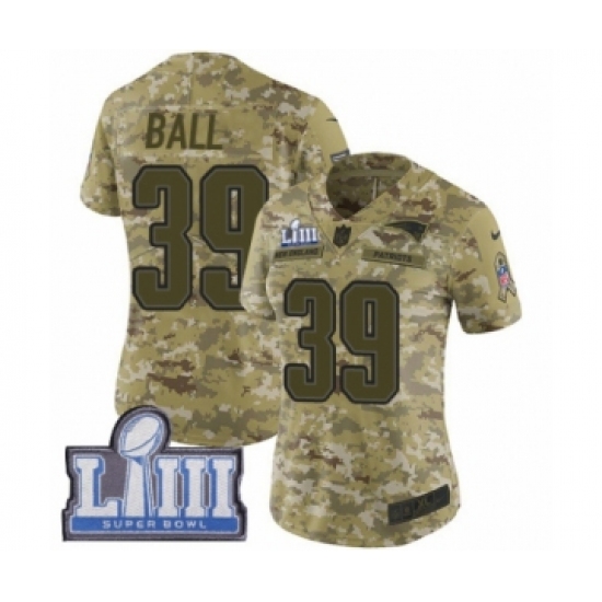 >Women's Nike New England Patriots #39 Montee Ball Limited Camo 2018 Salute to Service Super Bowl LIII Bound NFL Jersey