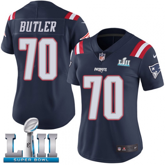 Home>NFL>New England Patriots>Adam Butler>Women's Nike New England Patriots #70 Adam Butler Limited Navy Blue Rush Vapor Untouchable Super Bowl LII NFL Jersey