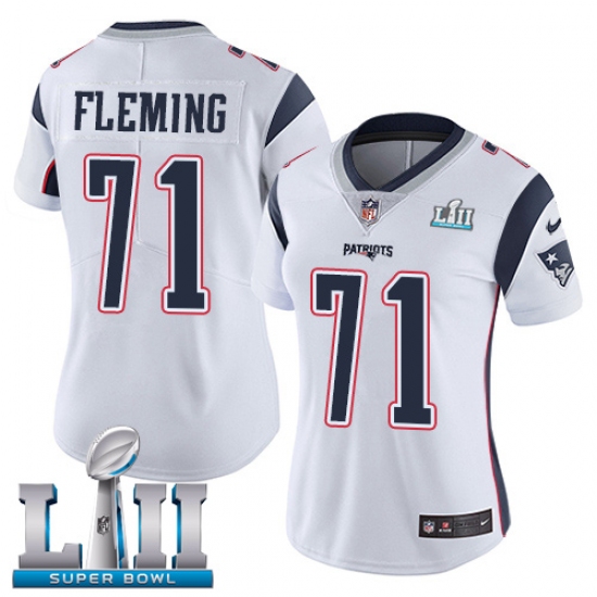 Women's Nike New England Patriots #71 Cameron Fleming White Vapor Untouchable Limited Player Super Bowl LII NFL Jersey