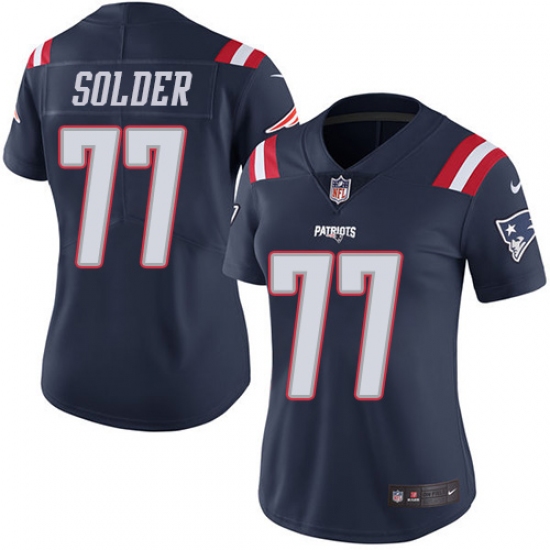 Home>NFL>New England Patriots>Nate Solder>Women's Nike New England Patriots #77 Nate Solder Limited Navy Blue Rush Vapor Untouchable NFL Jersey