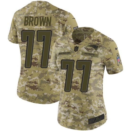 >Women's Nike New England Patriots #77 Trent Brown Limited Camo 2018 Salute to Service NFL Jersey