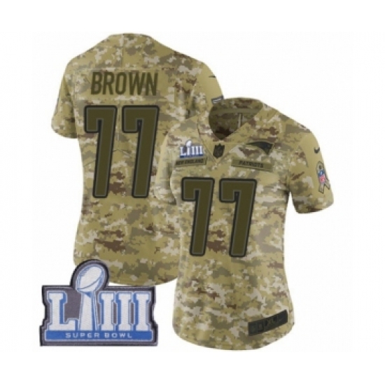 Women's Nike New England Patriots #77 Trent Brown Limited Camo 2018 Salute to Service Super Bowl LIII Bound NFL Jersey