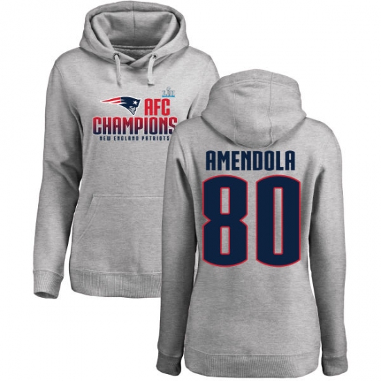 >Women's Nike New England Patriots #80 Danny Amendola Heather Gray 2017 AFC Champions Pullover Hoodie