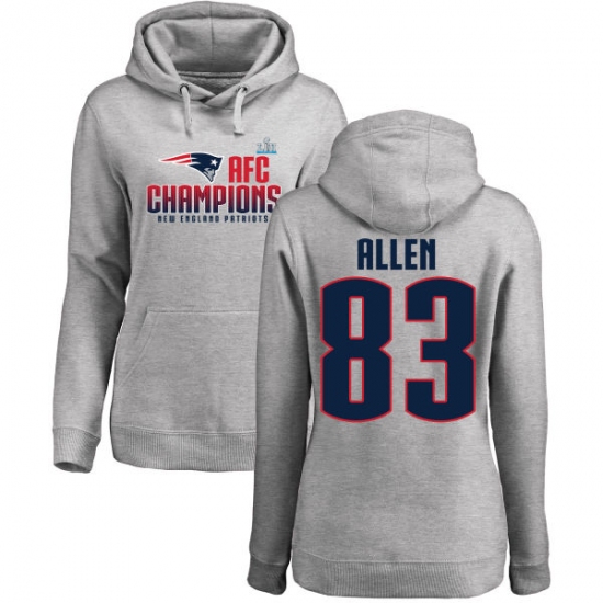 Women's Nike New England Patriots #83 Dwayne Allen Heather Gray 2017 AFC Champions Pullover Hoodie