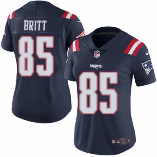 >Women's Nike New England Patriots #85 Kenny Britt Limited Navy Blue Rush Vapor Untouchable NFL Jersey