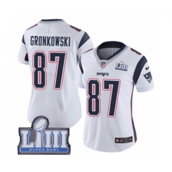 Women's Nike New England Patriots #87 Rob Gronkowski White Vapor Untouchable Limited Player Super Bowl LIII Bound NFL Jersey