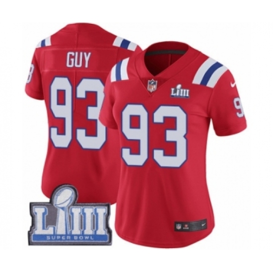 >Women's Nike New England Patriots #93 Lawrence Guy Red Alternate Vapor Untouchable Limited Player Super Bowl LIII Bound NFL Jersey