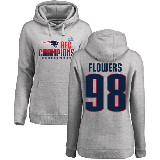 Home>NFL>New England Patriots>Trey Flowers>Women's Nike New England Patriots #98 Trey Flowers Heather Gray 2017 AFC Champions Pullover Hoodie