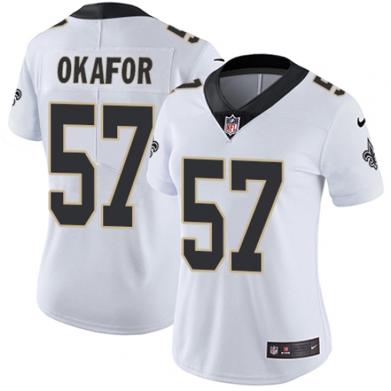 Home>NFL>New Orleans Saints>Alex Okafor>Women's Nike New Orleans Saints #91 Alex Okafor White Vapor Untouchable Limited Player NFL Jersey