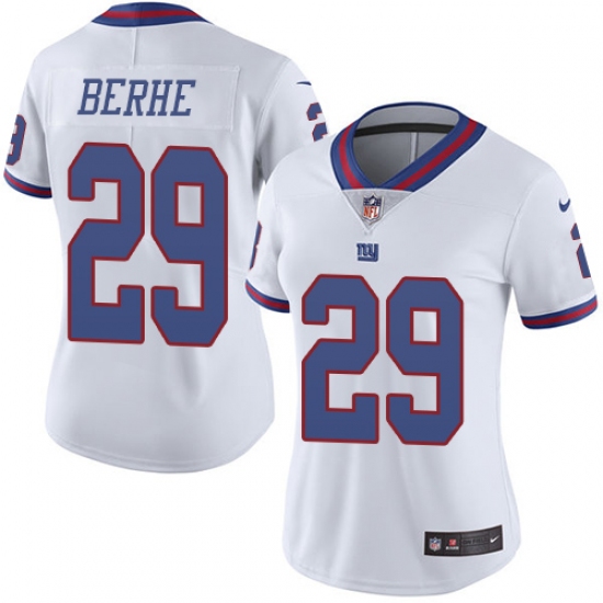 Home>NFL>New York Giants>Nat Berhe>Women's Nike New York Giants #29 Nat Berhe Limited White Rush Vapor Untouchable NFL Jersey