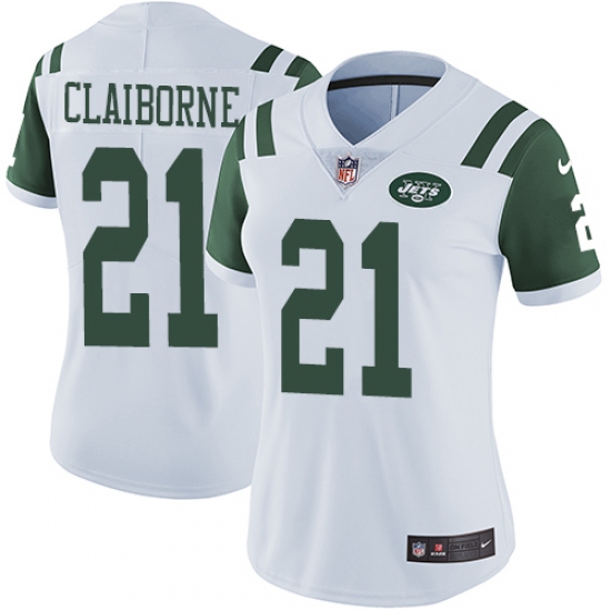 Home>NFL>New York Jets>Morris Claiborne>Women's Nike New York Jets #21 Morris Claiborne White Vapor Untouchable Limited Player NFL Jersey