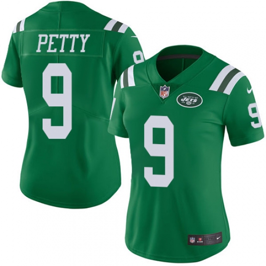 Home>NFL>New York Jets>Bryce Petty>Women's Nike New York Jets #9 Bryce Petty Limited Green Rush Vapor Untouchable NFL Jersey