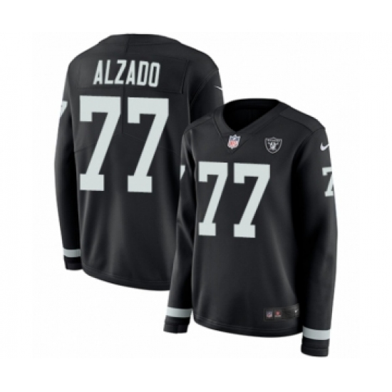 >Women's Nike Oakland Raiders #77 Lyle Alzado Limited Black Therma Long Sleeve NFL Jersey