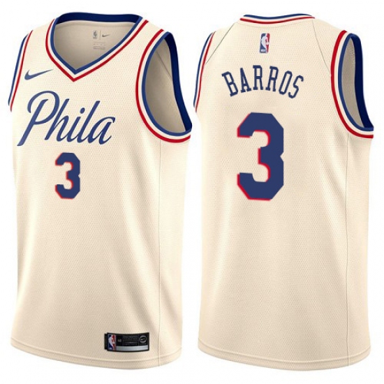 Home>NBA>Philadelphia 76ers>Dana Barros>Women's Nike Philadelphia 76ers #3 Dana Barros Swingman Cream NBA Jersey - City Edition
