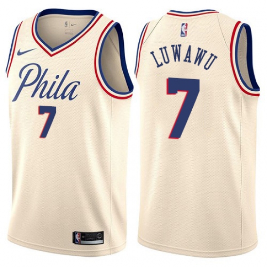 Home>NBA>Philadelphia 76ers>Timothe Luwawu>Women's Nike Philadelphia 76ers #7 Timothe Luwawu Swingman Cream NBA Jersey - City Edition