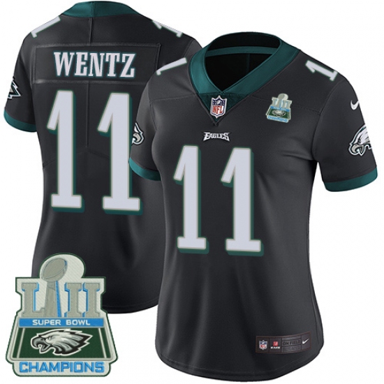 Women's Nike Philadelphia Eagles #11 Carson Wentz Black Alternate Vapor Untouchable Limited Player Super Bowl LII Champions NFL Jersey