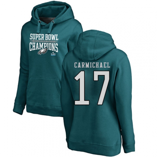 >Women's Nike Philadelphia Eagles #17 Harold Carmichael Green Super Bowl LII Champions Pullover Hoodie