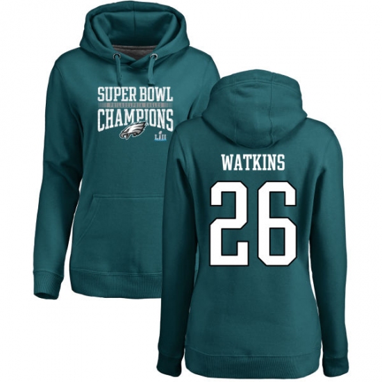 >Women's Nike Philadelphia Eagles #26 Jaylen Watkins Green Super Bowl LII Champions Pullover Hoodie