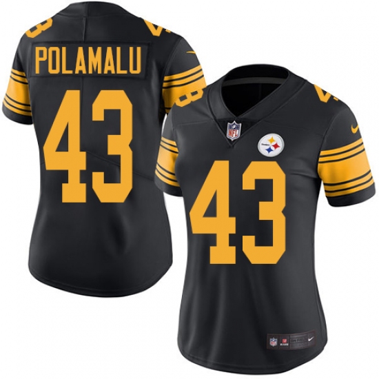 Women's Nike Pittsburgh Steelers #43 Troy Polamalu Elite Black Rush Vapor Untouchable NFL Jersey