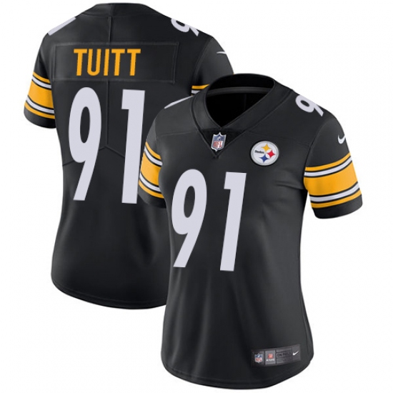 Home>NFL>Pittsburgh Steelers>Stephon Tuitt>Women's Nike Pittsburgh Steelers #91 Stephon Tuitt Black Team Color Vapor Untouchable Limited Player NFL Jersey